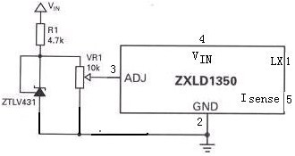 圖1是以ZETEX的ZXLD1350驅(qū)動器為例的典型直流電壓調(diào)光示意圖。
