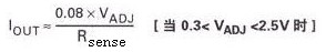 調(diào)節(jié)針可通過外置的直流電壓(VADJ)進(jìn)行過驅(qū)動,以獲得超過內(nèi)置的電壓基準(zhǔn),并調(diào)整輸出電流使其超出或低于額定值。此時的額定輸出電流為: